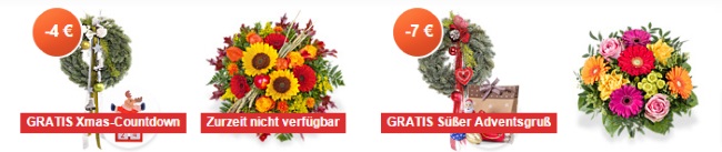 Egal ob Geburtstag, Jahrestag, Weihnachten oder ein Firmenjubiläum – Gründe zum Schenken gibt es wie Sand am Meer. Wichtig ist es, dass ihr dabei auch den Geschmack der zu beschenkenden Person trefft. Schließlich hat jeder so seine individuellen Vorlieben. Wenn ihr in etwa wisst, in welche Richtung es gehen soll, könnt ihr eigentlich gar nicht mehr viel falsch machen. Stöbert dann einfach mal ein bisschen im Internet – und wenn ihr dann noch ein paar Gutscheine braucht, um euren Rechnungsbetrag zu senken, schaut ihr hier in unserer Kategorie Blumen & Geschenke vorbei. Unsere Onlineshop-Empfehlungen, wenn es um Blumengrüße und sonstige Präsente geht: